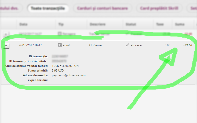 Clixsense nu mai plătește in contul PayPal. Eu am ales sa primesc banii pe Skrill, insa nu va recomand Skrill decat daca trebuie sa primiti multi bani in cont sau daca se aduna din mai multe surse. Spun asta pentru ca Skrill percepe un comision fix de 25 lei la fiecare retragere catre un card din Romania.