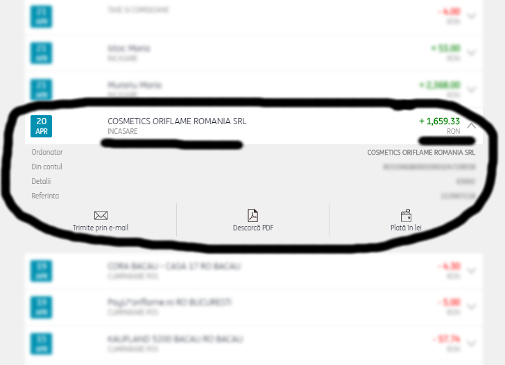 Altă dovadă de plata de la Oriflame, cu cativa lei mai putin decat luna trecută. Dar tot e bine.